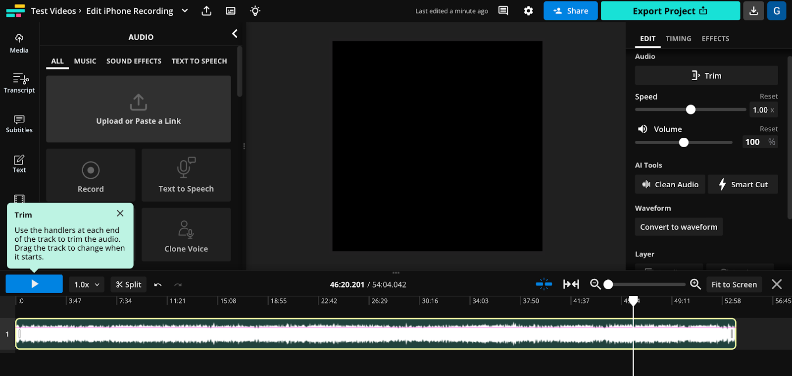Once the audio recording from your iPhone is uploaded, now you can begin editing the audio with Kapwing. There's a lot you can do, so let's walk through some of the options: