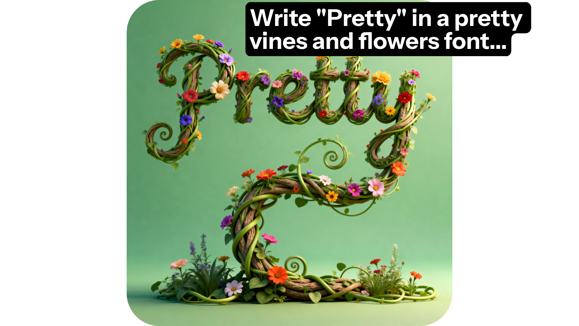 Create and edit scroll-stopping text art with Kapwing's AI pretty Font Generator. No design or technical experience necessary: just describe your vision in an intuitive prompt like Write "Hello" in a pretty font.