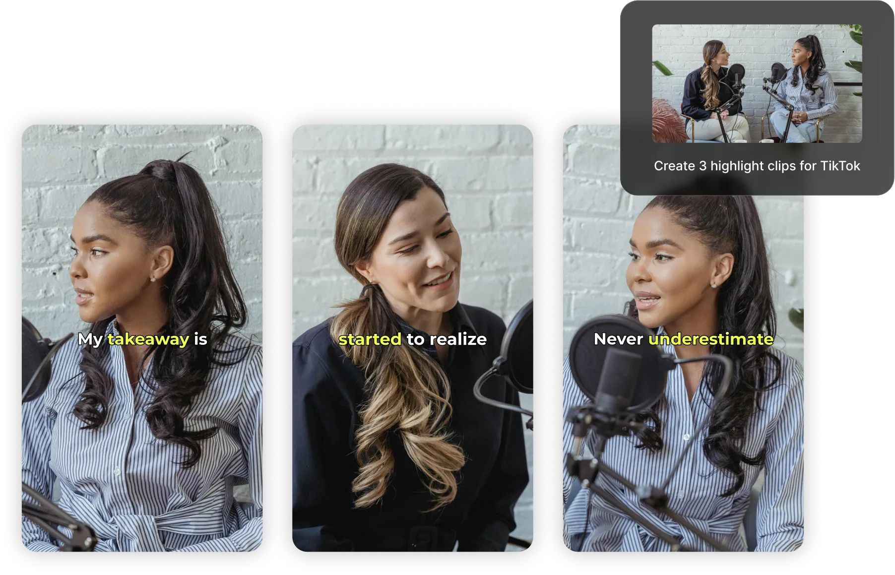 Podcasters quickly capture and share key moments from their long podcast videos, adding subtitles for improved accessibility and multiplying their audience reach for free