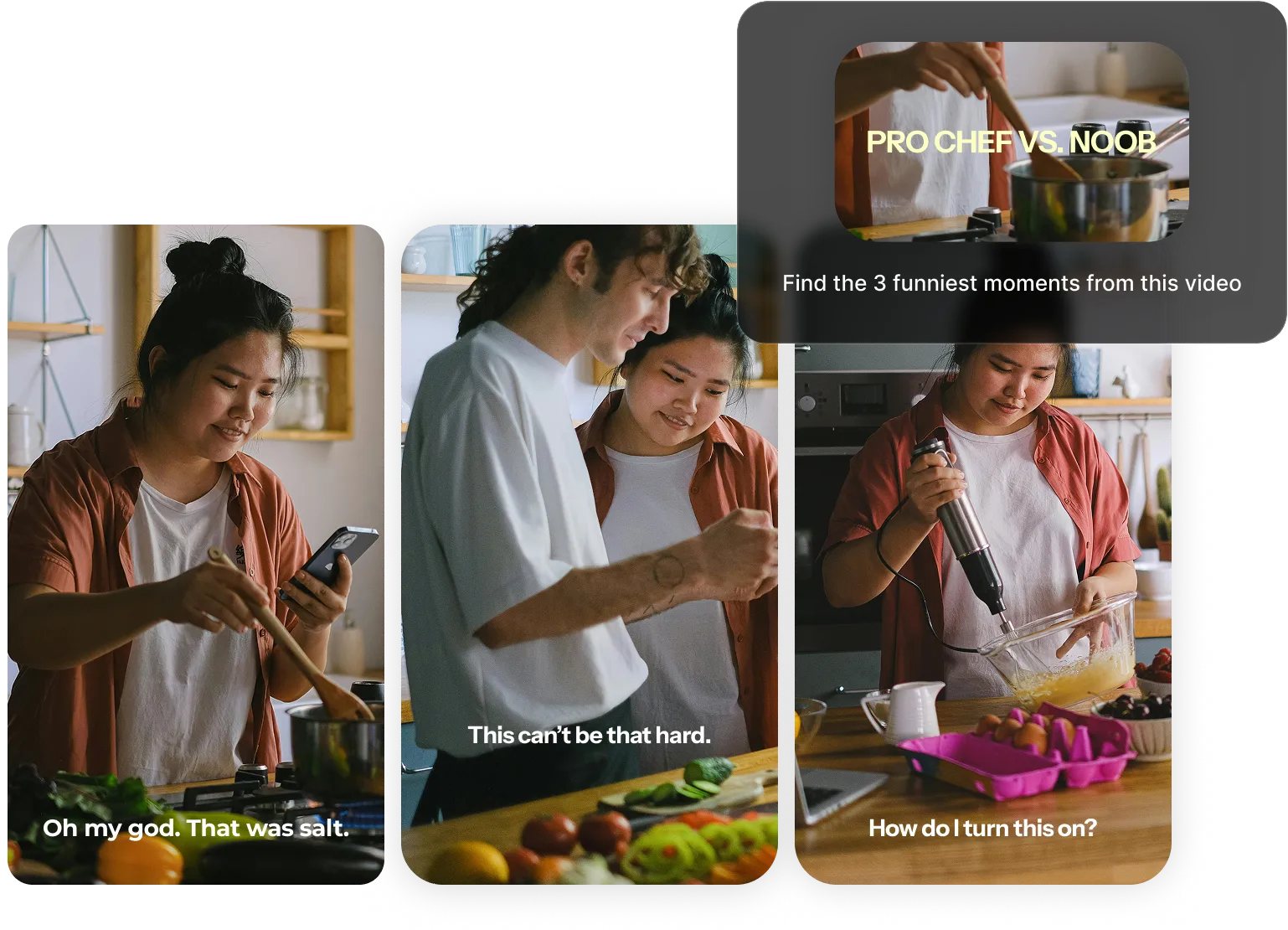 YouTubers seamlessly repurpose their full-length uploads as Shorts with the AI Video Highlight Maker, cutting hours of editing time off of their workflow in one online video editor