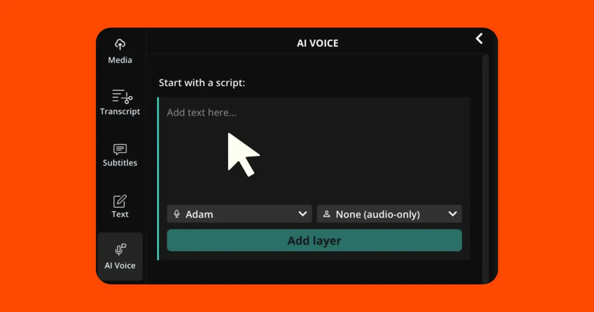 Open a new project and paste your script into the text to speech tool. You can also use Kapwing’s AI to generate a script for your video if you don’t have one ready.