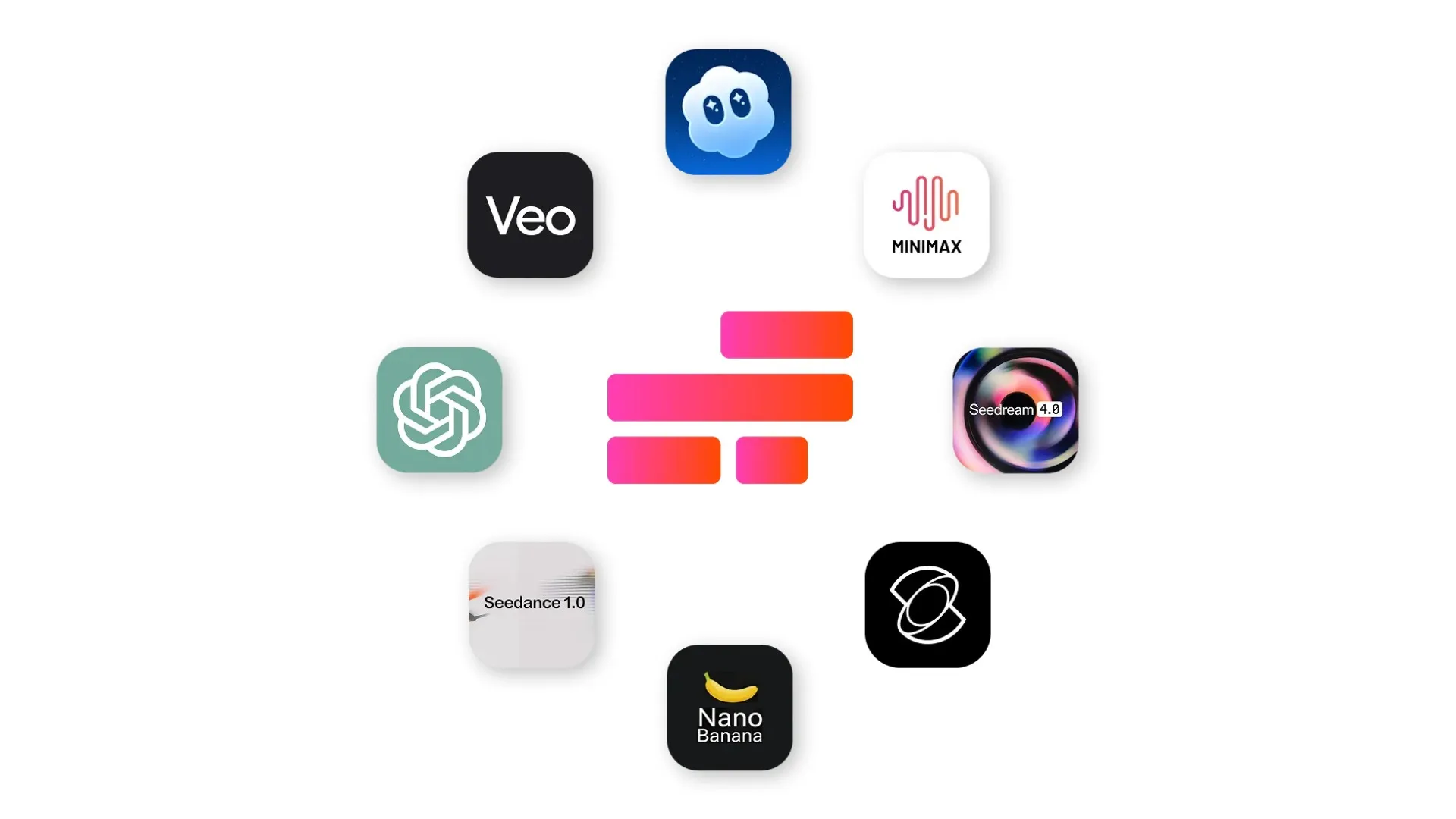 Supported by multiple leading AI models like Kling, Veo, Sora, Seedance, MiniMax, ChatGPT Image, and Nano Banana