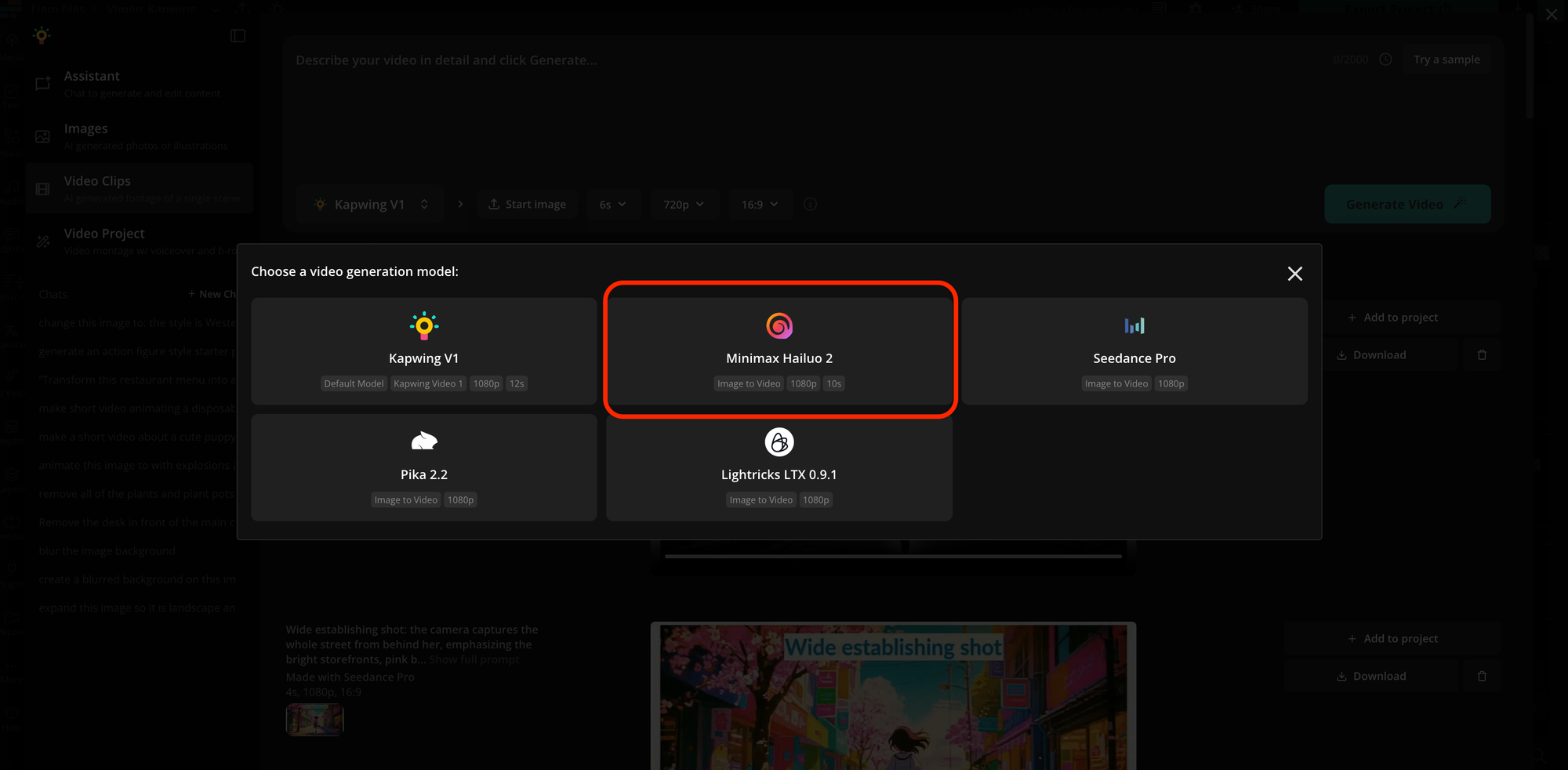 Two of MiniMax’s flagship models are now live in Kapwing’s AI Video Generator: