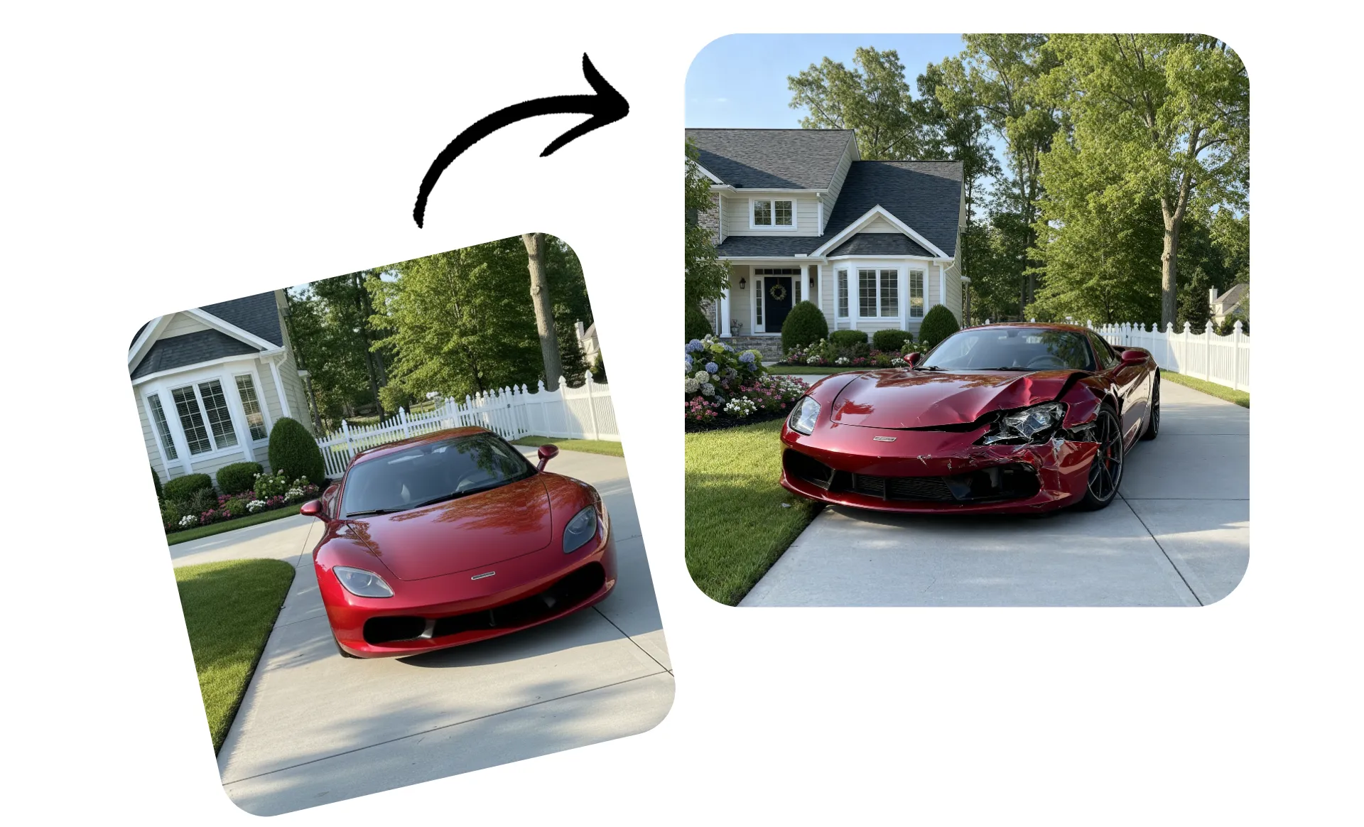 Edita imágenes con el Generador de Bromas IA para hacer que tu jefe piense que el techo se derrumbó en el trabajo. O añade un arañazo realista al nuevo coche que adora tu esposa. Tenemos un montón de ideas geniales para bromas que puedes probar ahora mismo, o puedes ser creativo y hacer que Kapwing IA añada o elimine cualquier elemento para crear una broma hilarante.