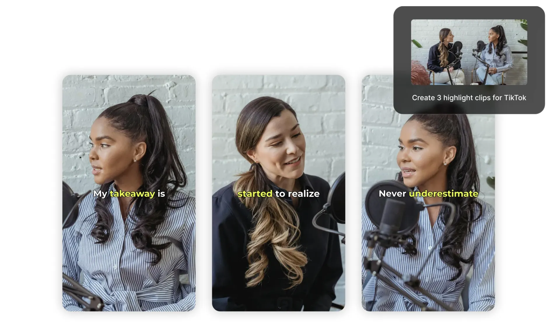 המר באופן מיידי פרקי podcast שלמים לקליפים מוכנים לשיתוף ב-TikTok ו-YouTube — ללא עריכה ידנית
