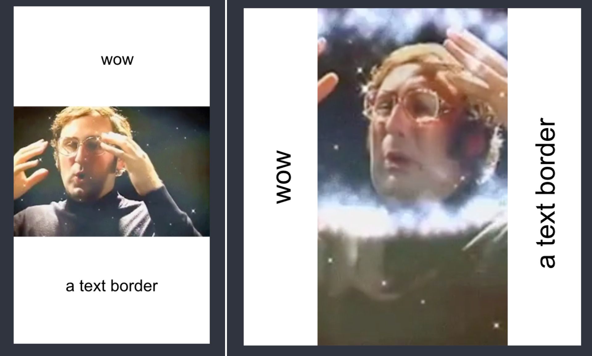 The most commonly used border on Kapwing is the text border. This border helps users create a portrait (vertical) format version of their landscape (horizontal) content, or vice versa.