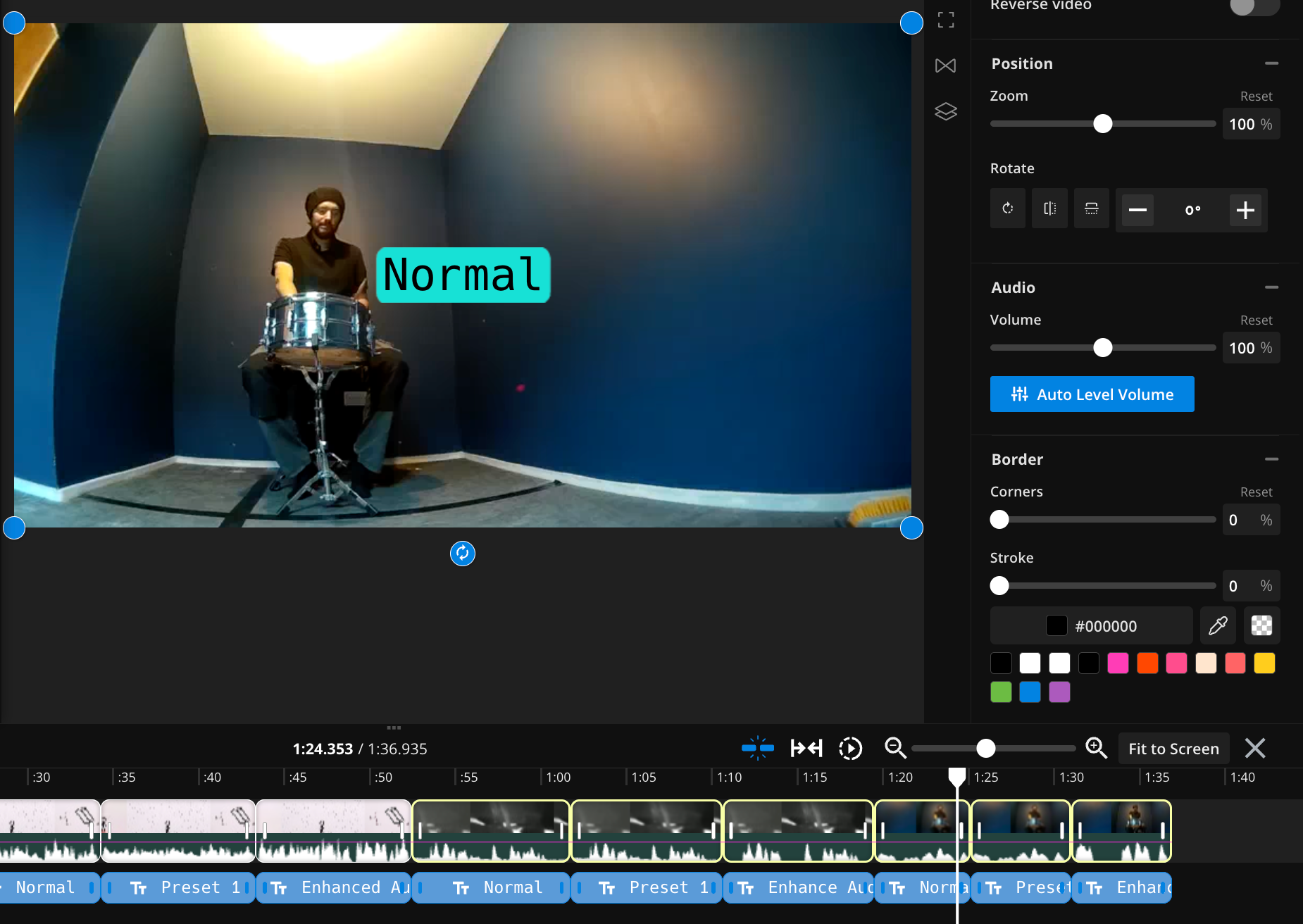 Reduce glitches and bring the volume of the audio into the same range with auto-volume leveling. Kapwing added a new technology that smooths out the sound from one or multiple tracks. If your audio is too loud or too quiet in parts, use the auto level volume button to equalize the loudness.