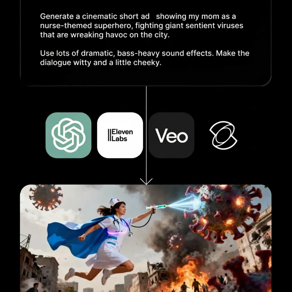 간단한 프롬프트나 스크립트를 몇 분 안에 구조화된 비디오 광고로 변환해 보세요 — 새로운 훅을 테스트하는 크리에이터를 위해 디자인됨