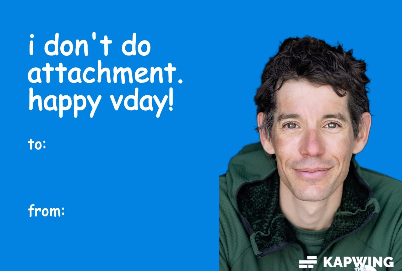 Alex Honnold Valentine’s Day Meme Card – “I Don’t Do Attachment”