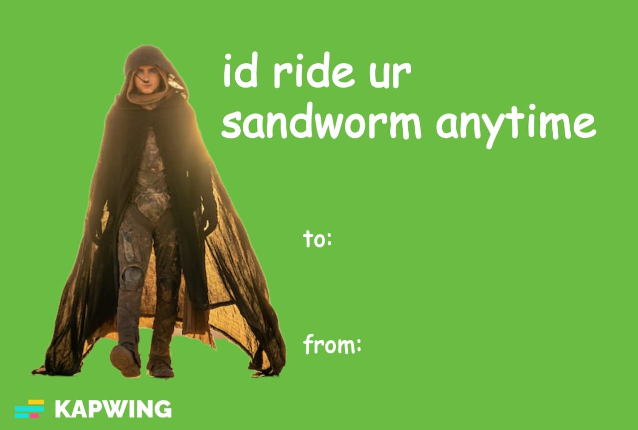 Dune Valentine’s Day Meme – “I’d Ride Your Sandworm Anytime”