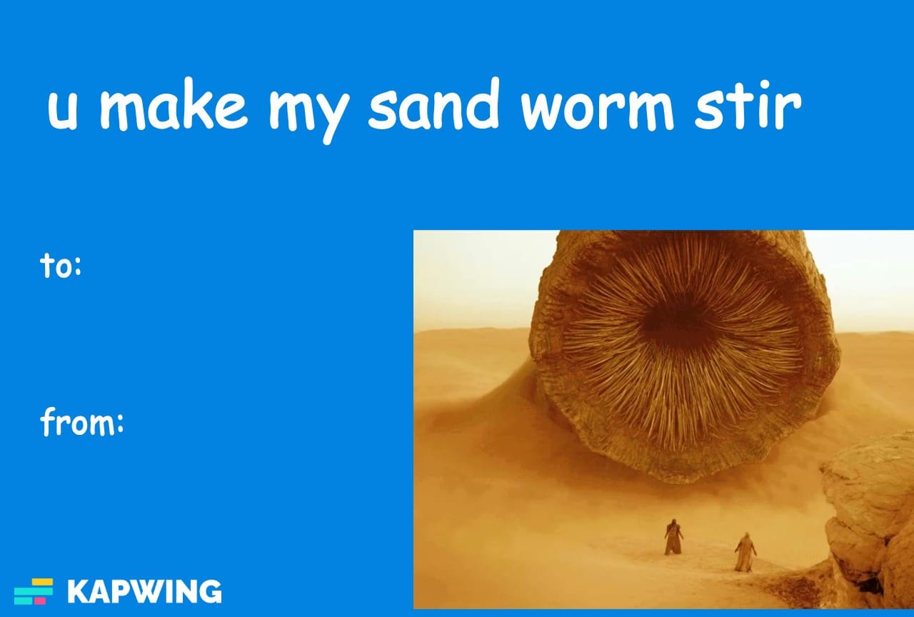 Dune Valentine’s Day Meme Card – “You Make My Sandworm Stir”