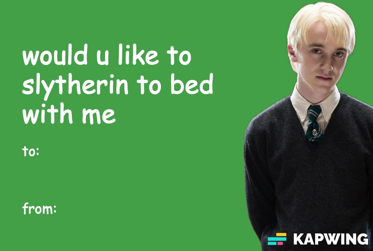 Harry Potter Valentine’s Day Meme Card – “Would You Like to Slytherin To Bed?”