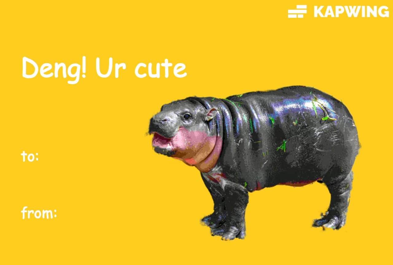 Moo Deng Valentine’s Day Meme Card – “Deng Ur Cute”