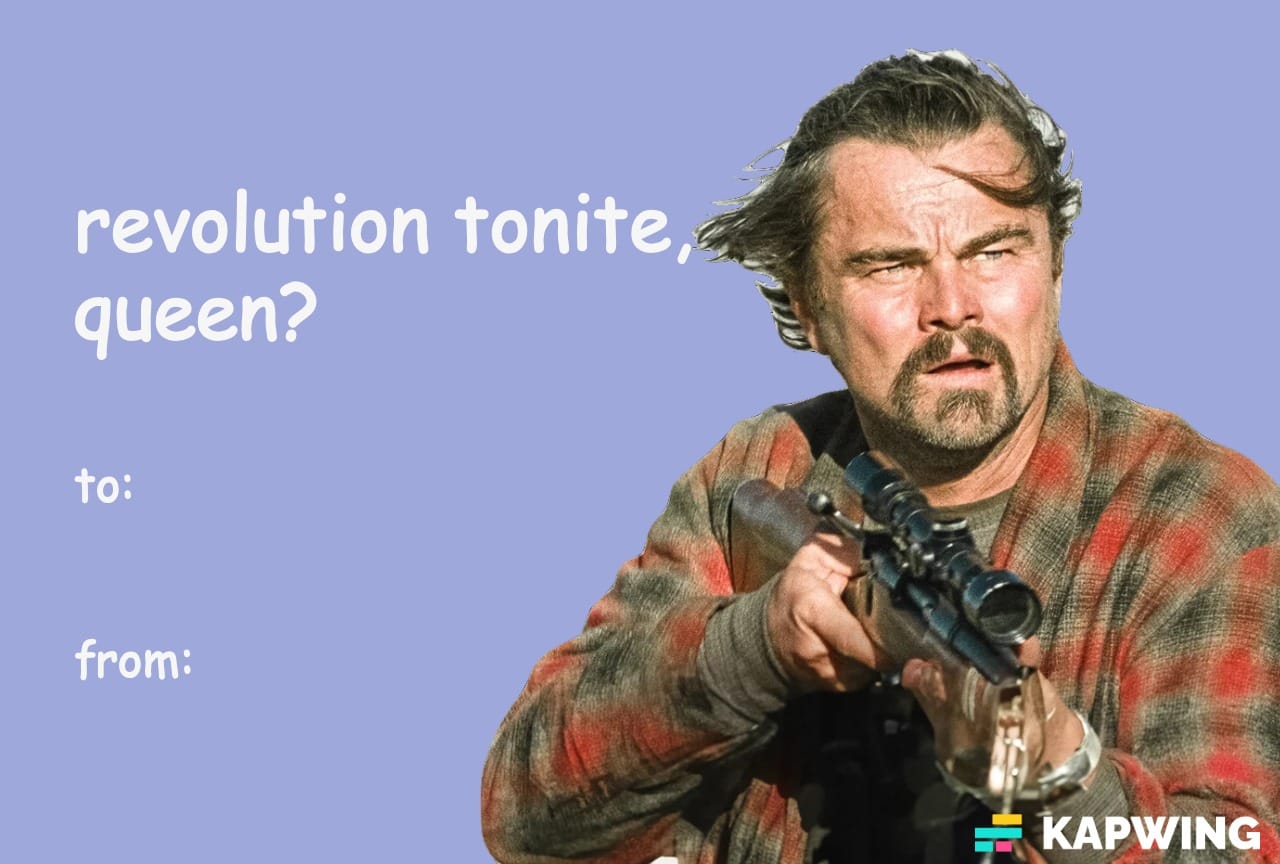 One Battle After Another Valentine’s Day Meme Card – “Revolution Tonight, Queen?”