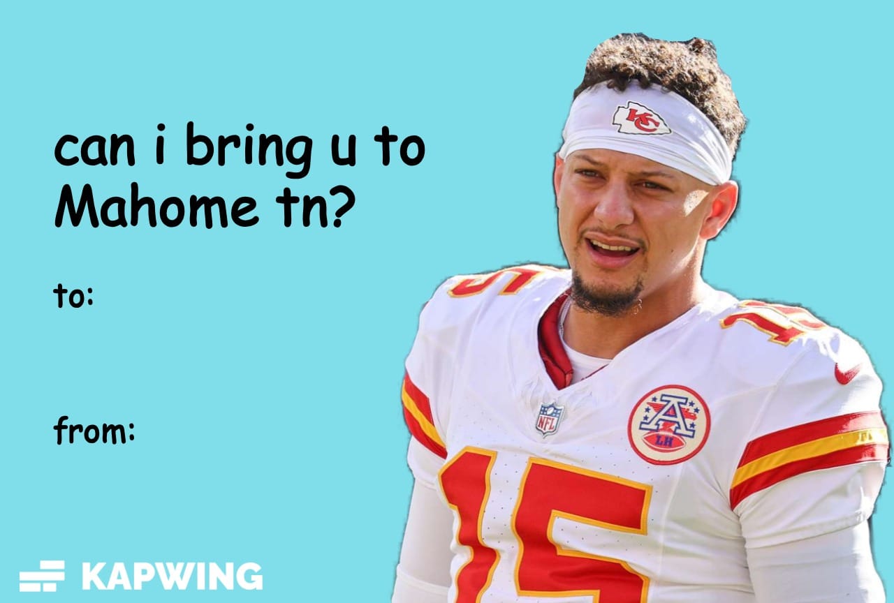 Patrick Mahomes Valentine’s Day Meme Card – “Can I Bring You to Mahomes Tonight?”