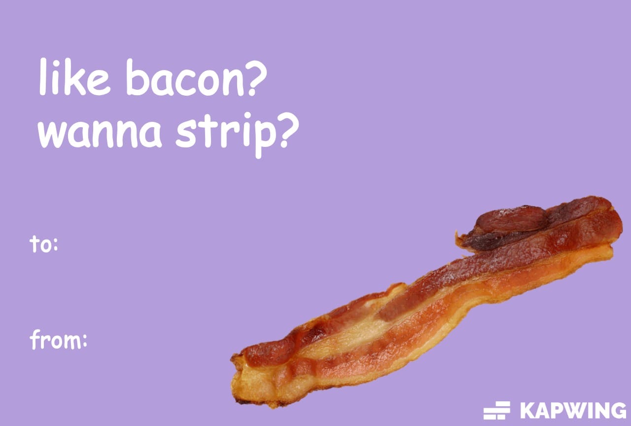 Pun Valentine’s Day Meme Card – “Like Bacon? Wanna Strip?”