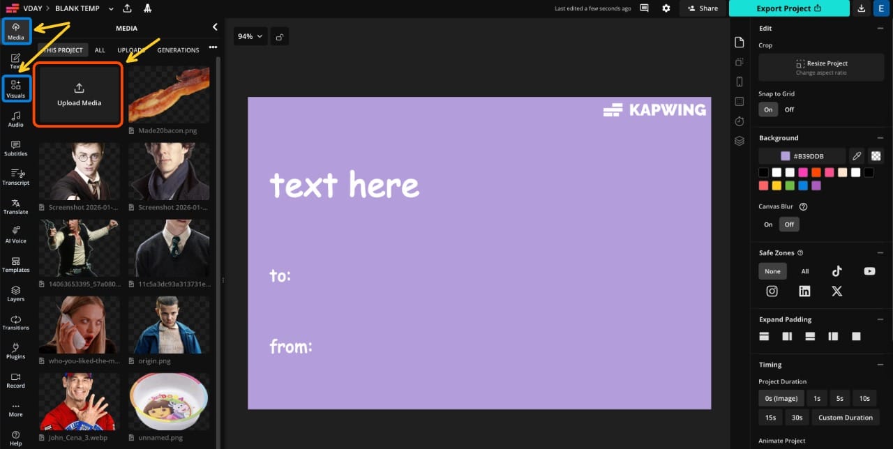 First, add your media. Most Valentine's Day meme cards use an image, but you could also use a GIF or video.