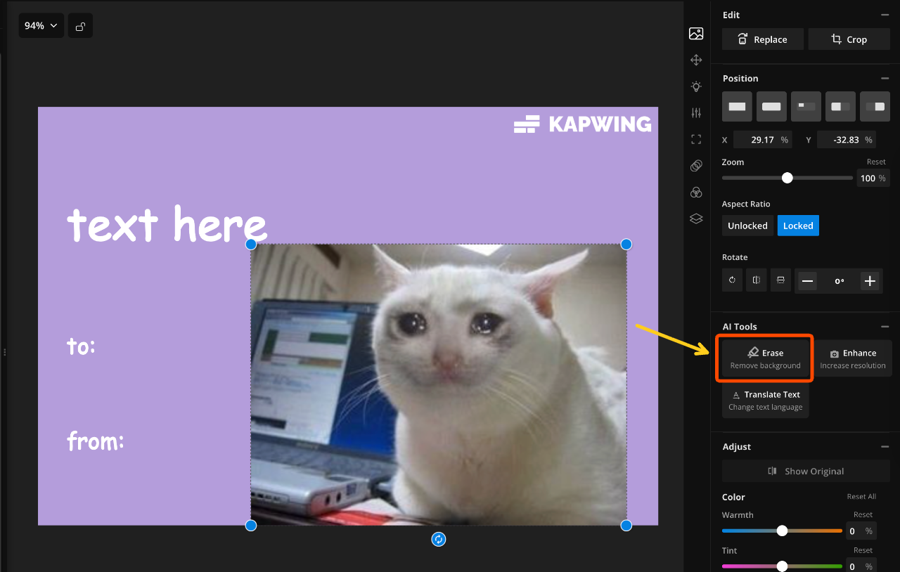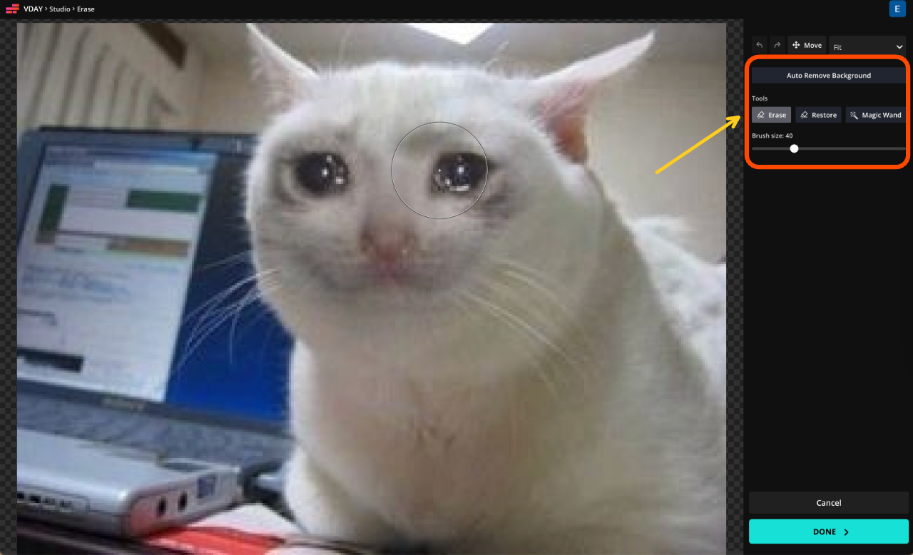 To get the classic meme cutout look, select your image and use the Erase tool.