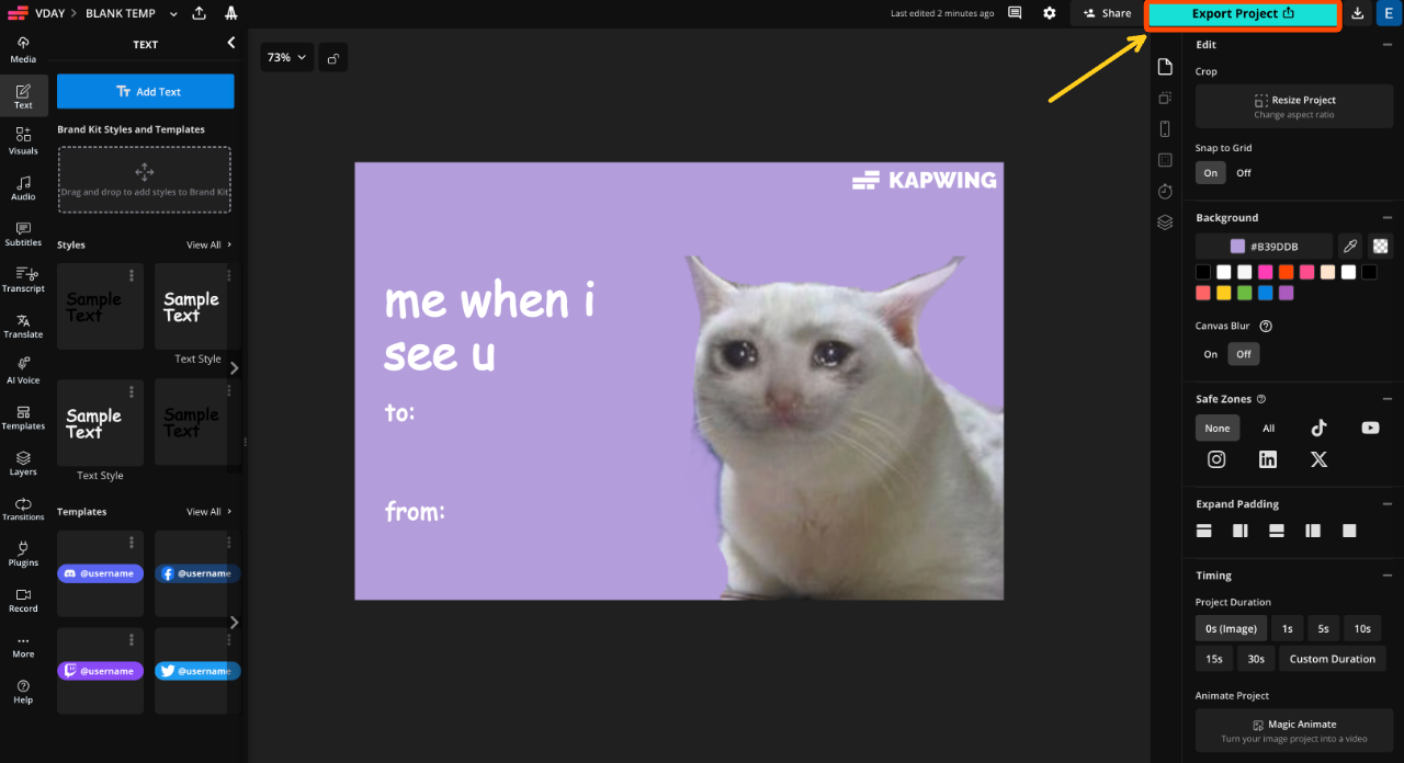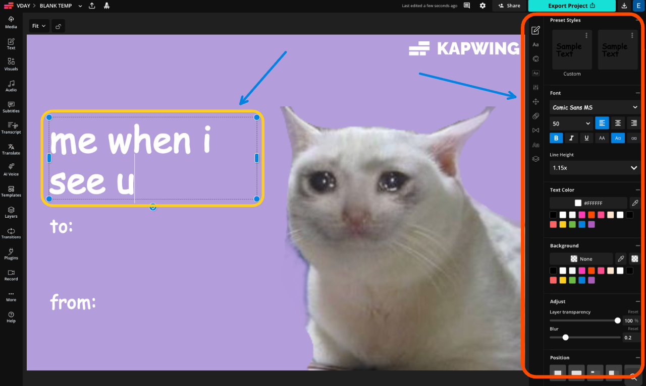To create your own intentionally bad Valentine’s Day meme, start by opening the blank Valentine’s Day meme card template in the Kapwing Studio.