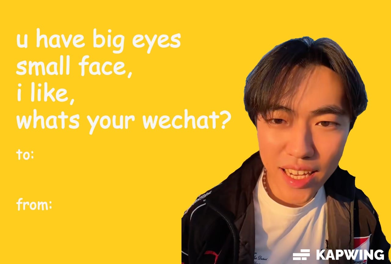 Valentine’s Day Meme Card – “You Have Big Eyes, Small Face… What’s Your WeChat?” (Remy Zee)
