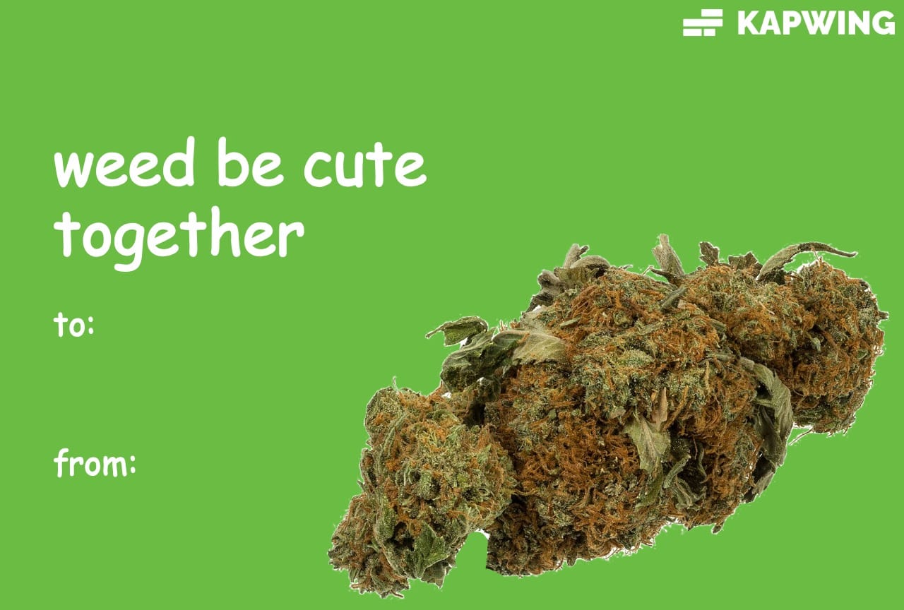 Weed Valentine’s Day Meme Card – “Weed Be Cute Together”