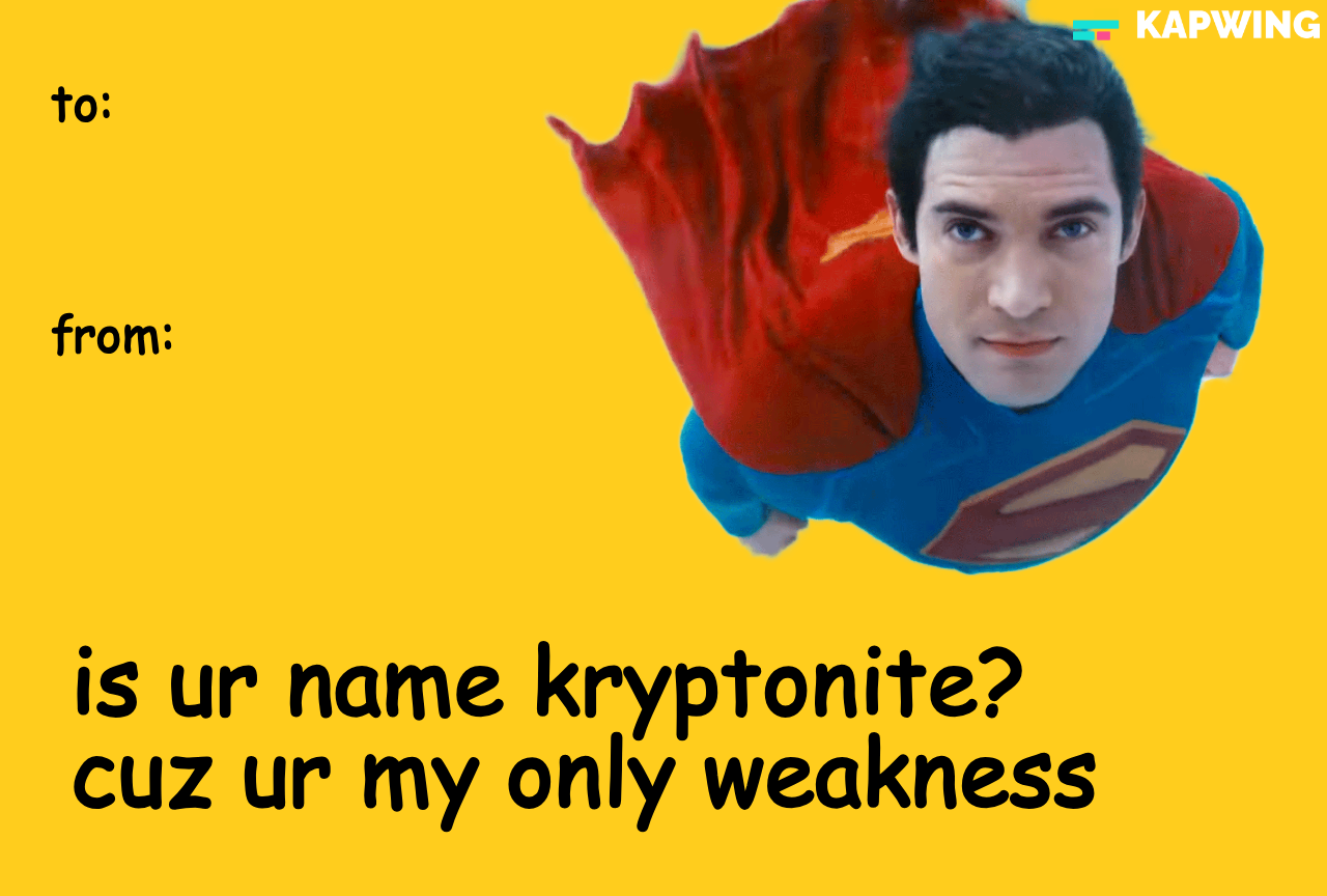 Superman Valentine’s Day Meme Card – “Is Your Name Kryptonite? ’Cuz Ur My Only Weakness”