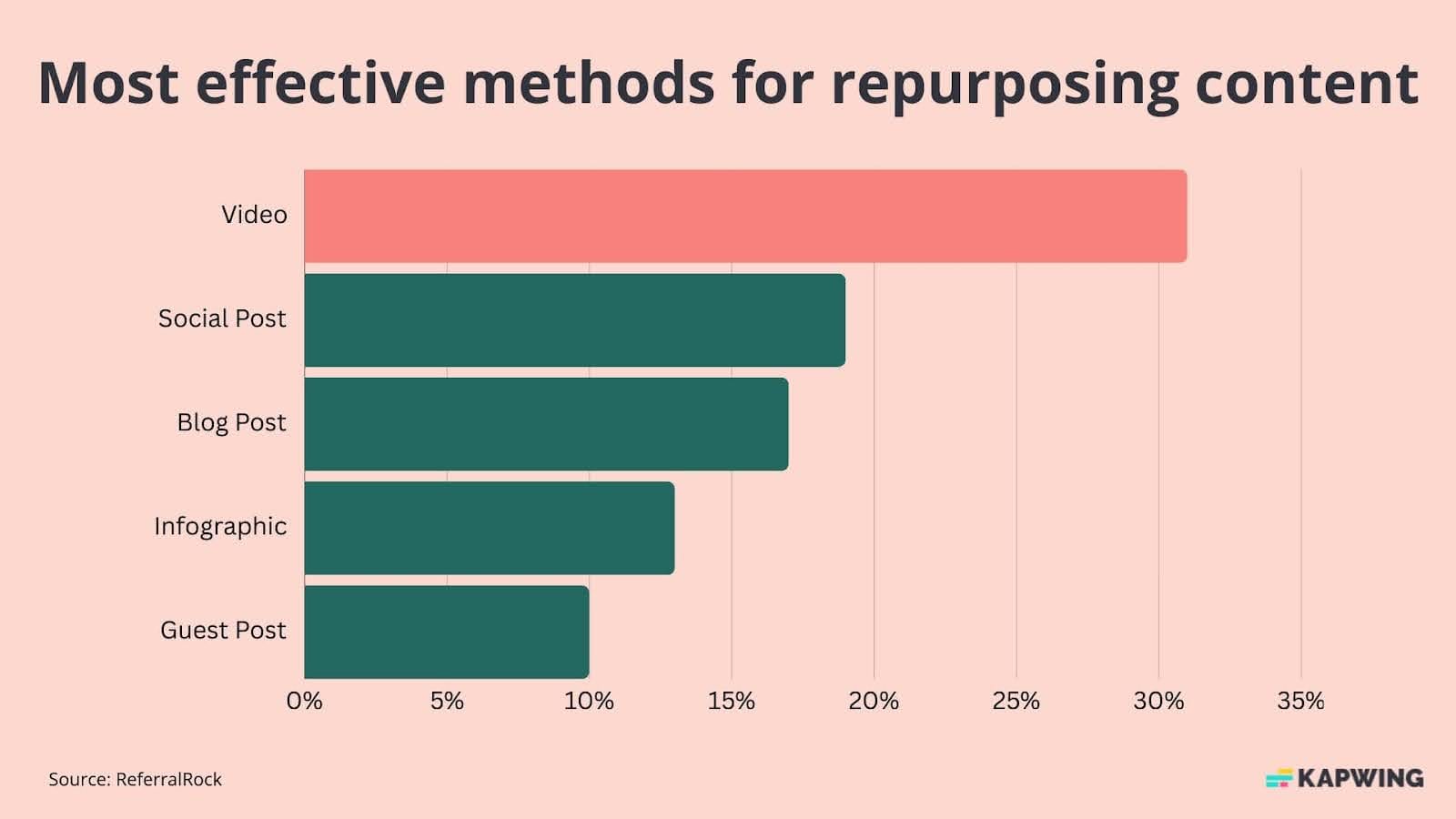 Going back to that ReferralRock report, 31% of marketers said creating video is the most effective method for repurposing existing content.