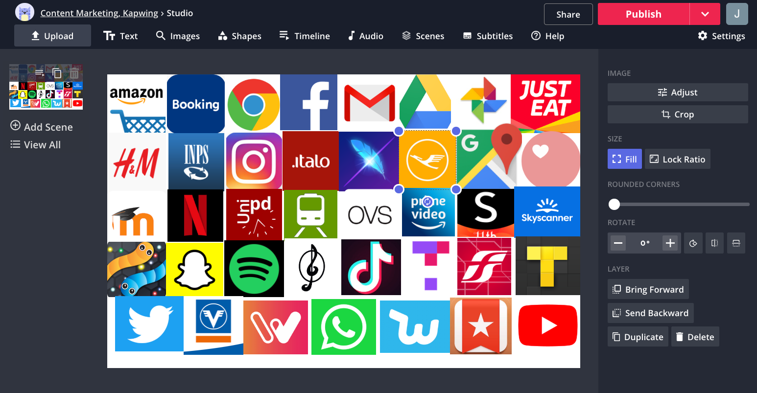 Kapwing dynamically resizes each picture to fit within the bounding box, but you can lock the aspect ratio by clicking "Lock Ratio" in the options menu. Creators can always crop a picture layer, if they want to cut out a part of it, or add rounded corners.