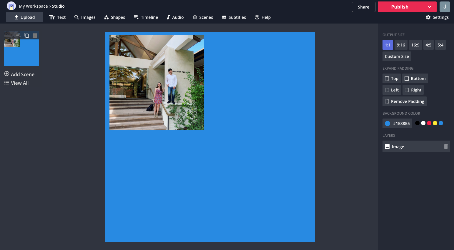Use the tools in the editing panel to change the color and size of the background. For example, creators can change to 9:16 to make a picture collage for their Instagram Story or 16:9 to make a collage thumbnail for YouTube.