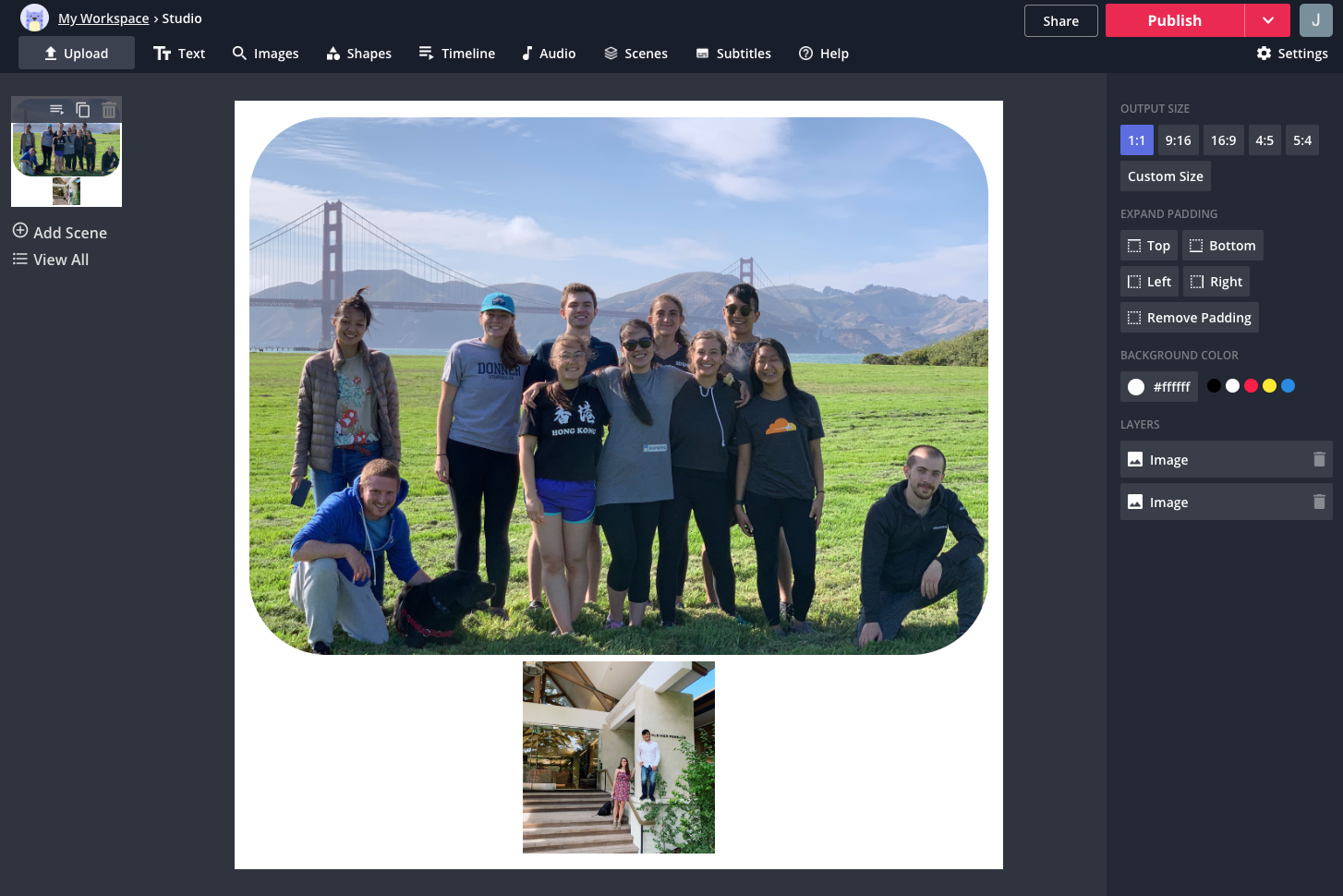 Creators can use Kapwing to make collages for social media, for work, or for any personal passion. Making collages lets you show many pictures at once with decorations around each layer. We've strived to design a tool that's as simple as it should be, so let me know if you have ideas for improvement or ways we can make it every better for you!