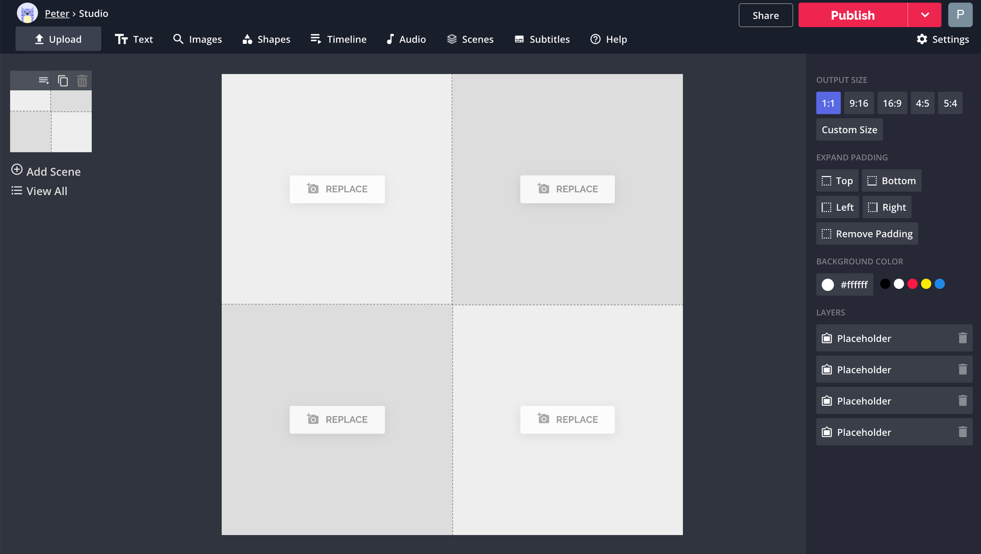 Use the Output Size option in the toolbar to crop your GIF collage for Instagram (1:1), crop for your Story (9:16) or YouTube (16:9), add padding for a custom size, or Remove Padding for no crop at all.