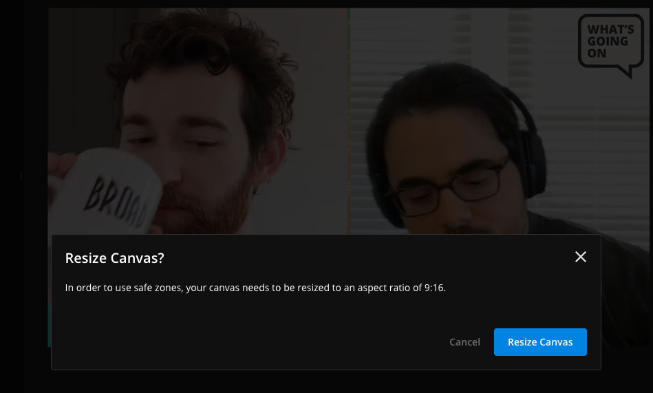 When you hit "All," you'll see a pop up asking letting you know that Safe Zones will automatically resize your content to 9:16. Confirm by clicking "Resize Canvas."