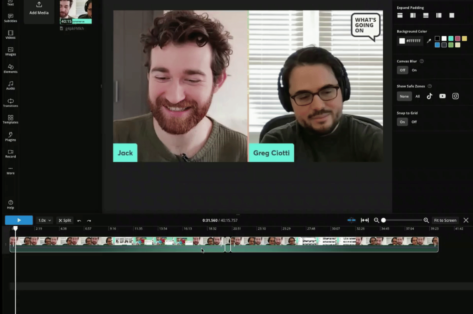 Load your long-form video into your video editor of choice. I recommend using Kapwing, a browser-based editor. It's convenient to use but it also has a couple of specific tools that make this whole process so much easier.