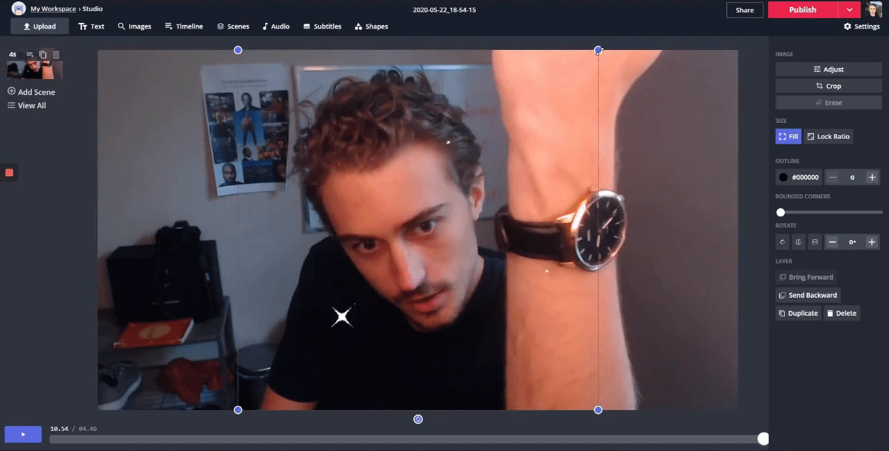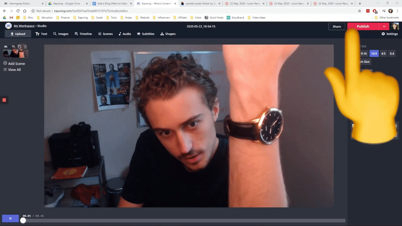 Once you’re done, click ‘Publish’ from the top right, wait for it to process and download the final project!
