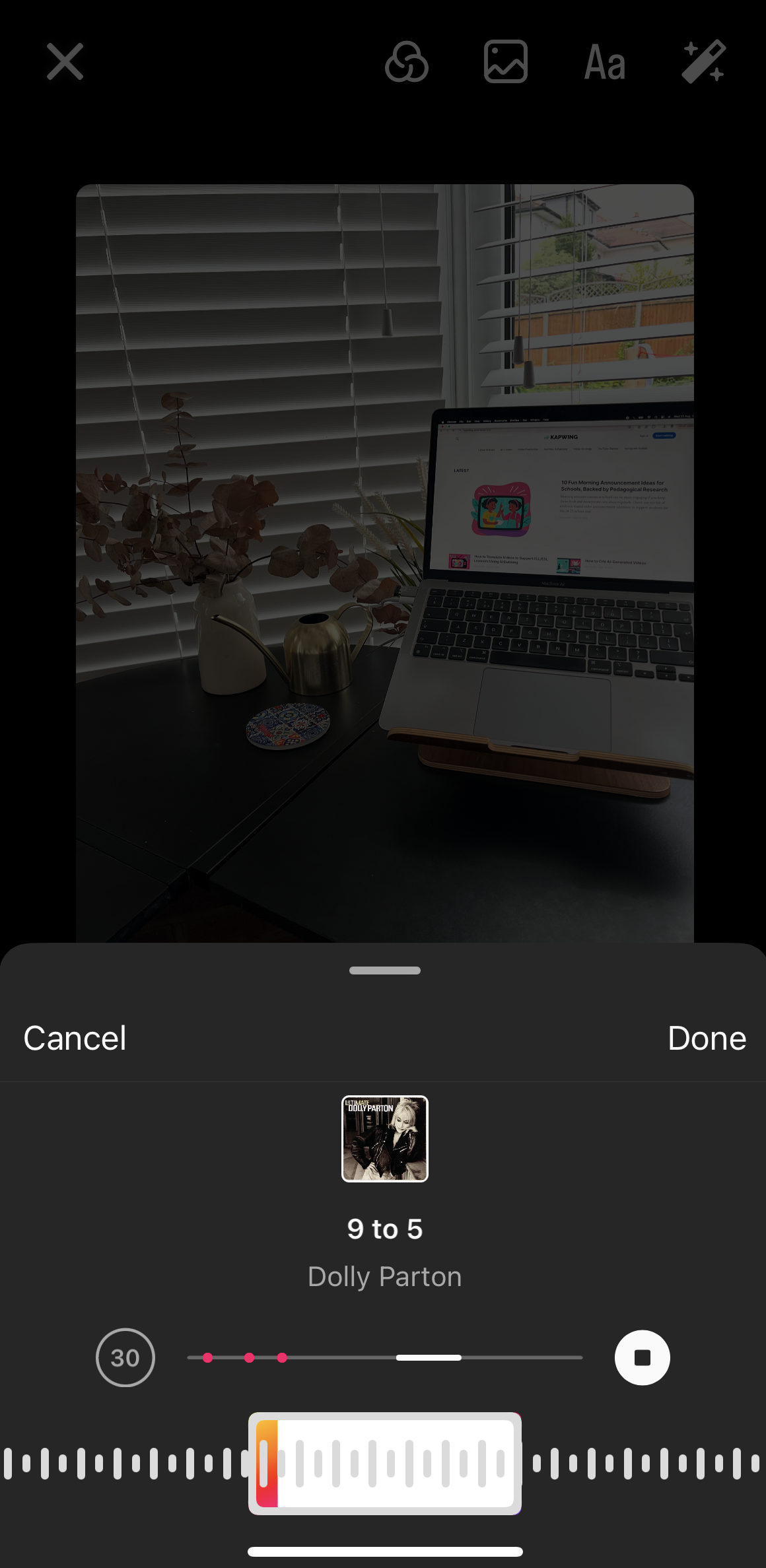 How to add music to your Instagram post by browsing a song and selecting a 30-second timeframe