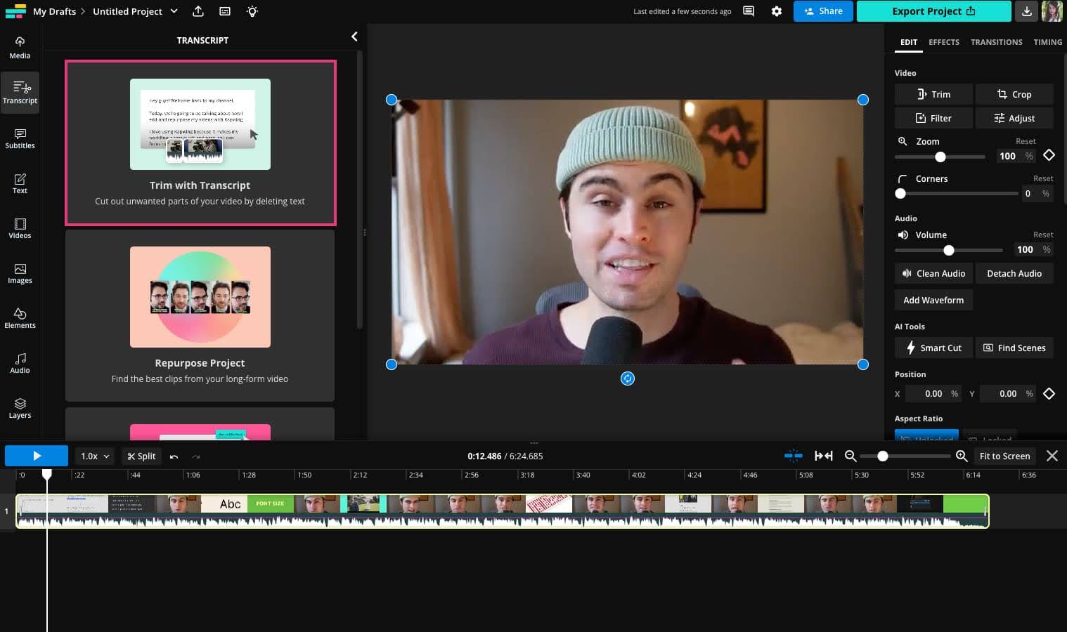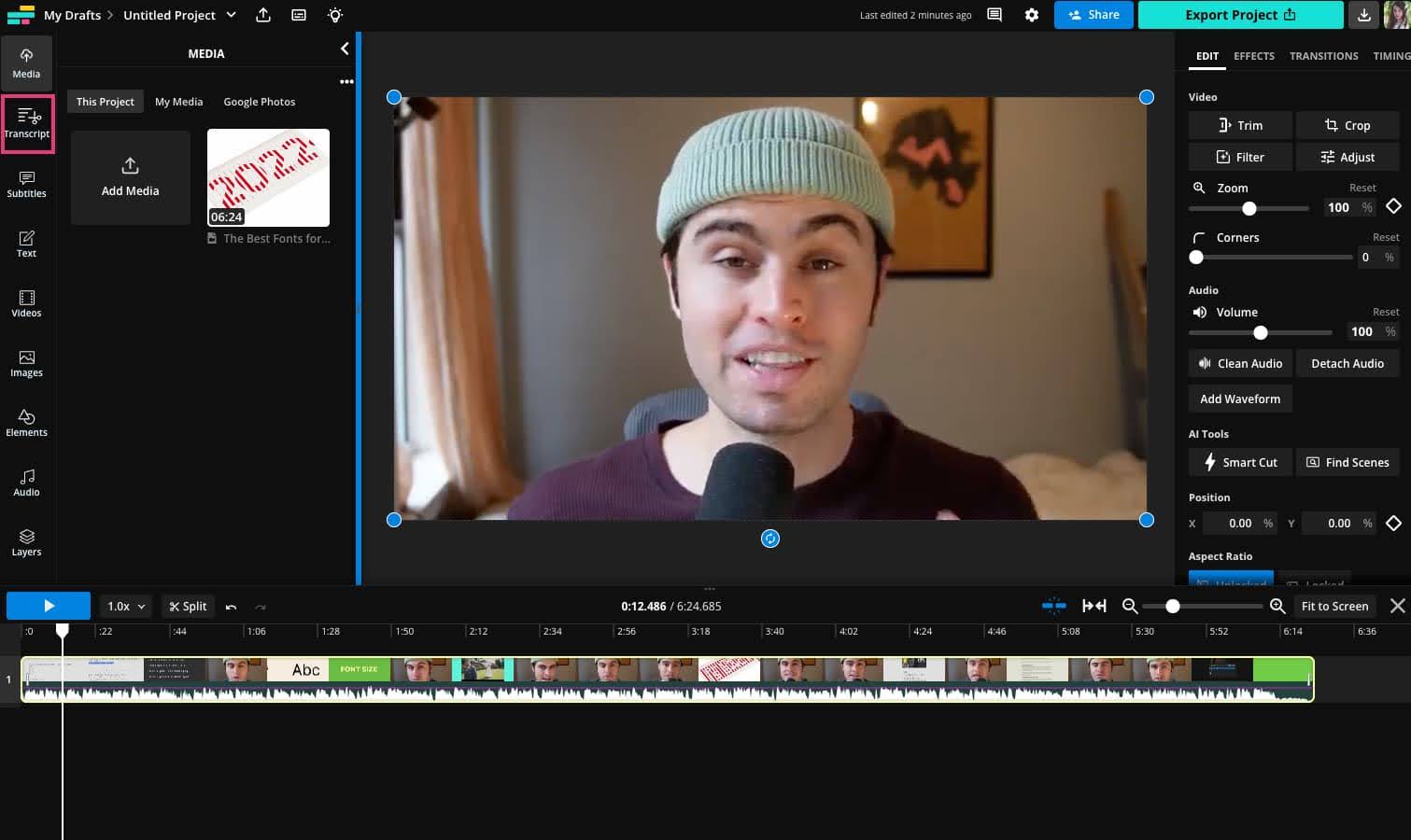 Once your video’s transcript has been generated, take some time to review it. While Kapwing’s transcription software is very accurate, it can make some mistakes.