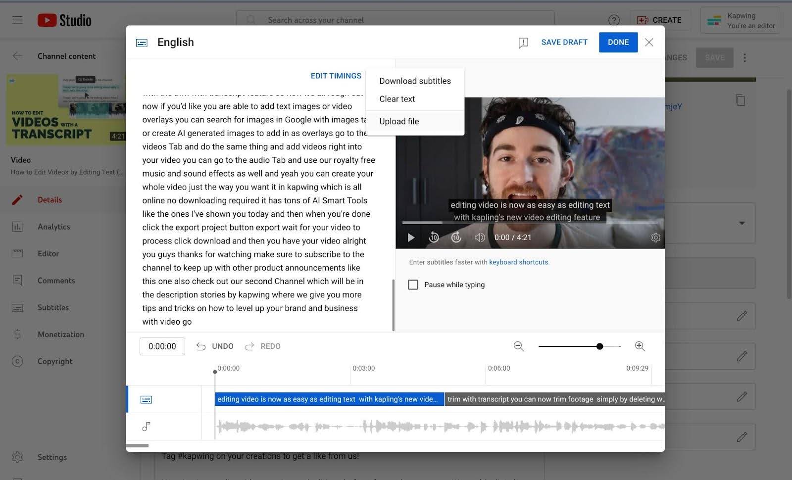 Now that you have your transcript, it’s time to upload it to YouTube and sync it with your video.