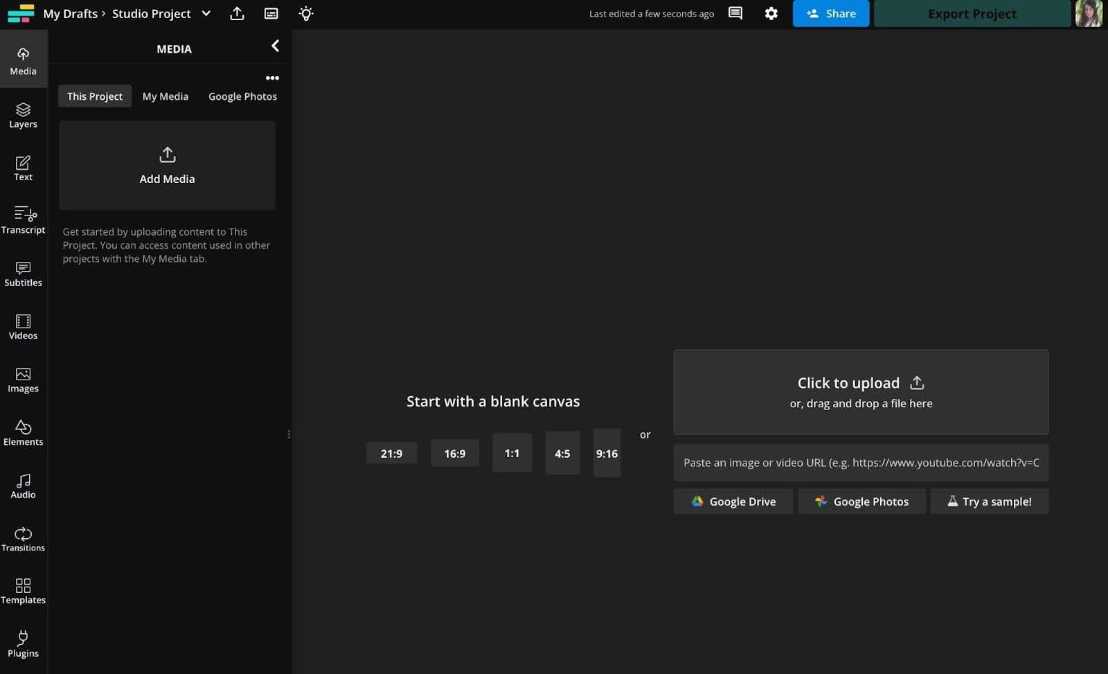 You can upload your video directly from your device, from Google Drive or Photos, or from elsewhere online using a URL.