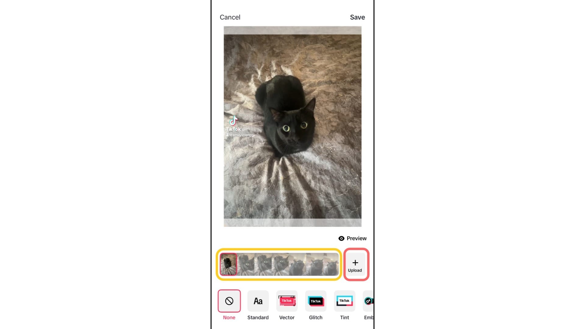Now you have a high-quality TikTok cover photo ready to use. The next time you upload your video to TikTok, just tap “Edit cover” → “Upload” and select the custom thumbnail you created.