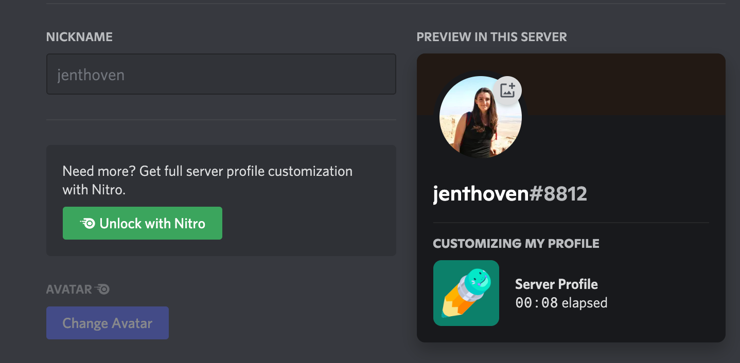 But if you are a Discord Nitro member, you can get started here with uploading the new profile avatar. From here, type a nickname for the server you’re in, then click the upload icon next to your avatar to change the picture. Save the changes and you're all set to debut your new identity! If at anytime you want to revert the changes, click Reset to Primary Avatar. Continue this process for every server avatar you wish to change.