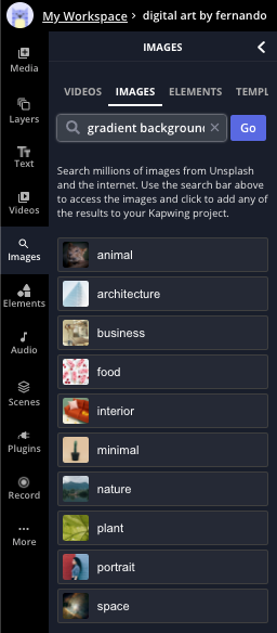 For the background, I searched "gradient background" under the Images tab and selected this blue gradient. By searching through images, you will find copyright-free images you can use for your own image.
