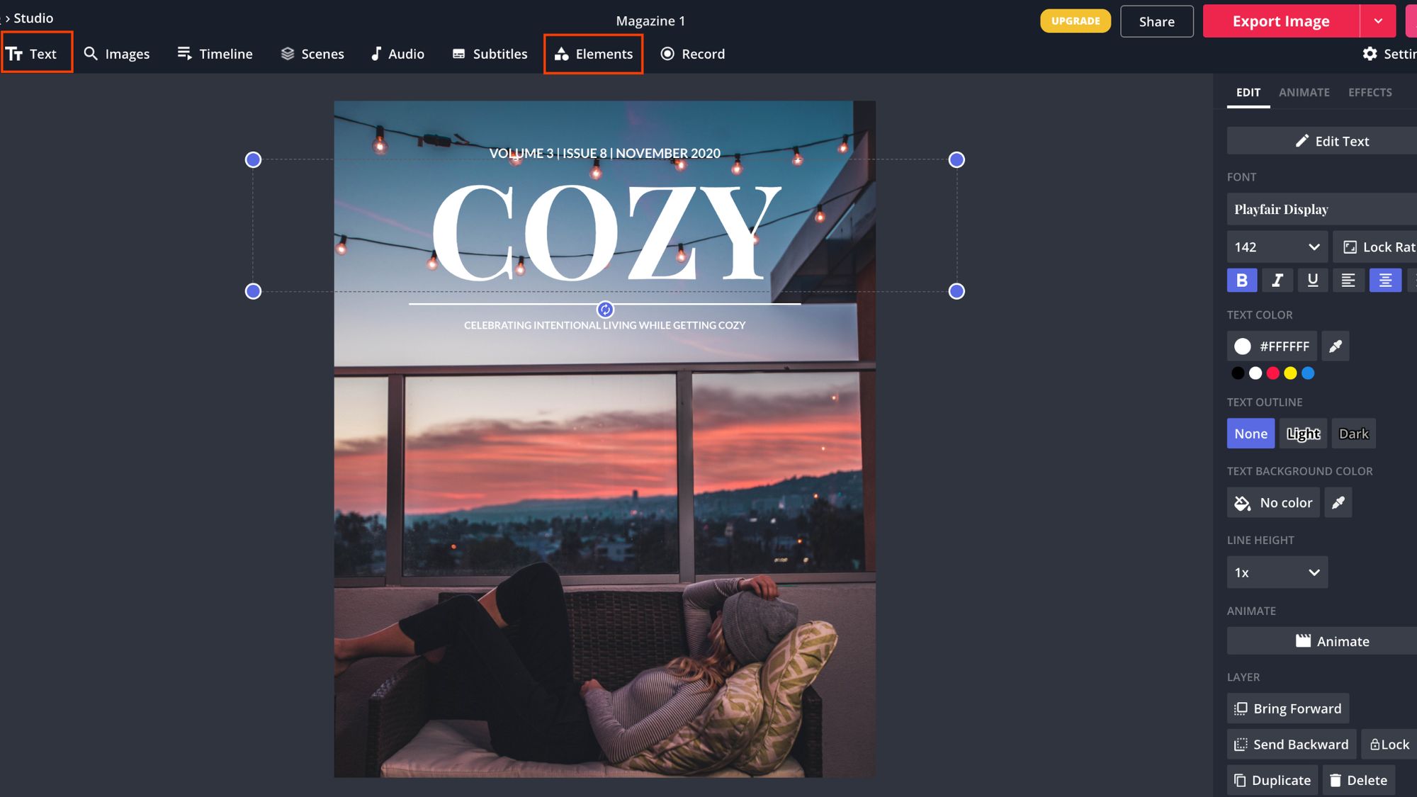 Create an eye-catching magazine cover with this free template by Kapwing. Customize the cover with a message using different font styles and add your favorite photo to the background.