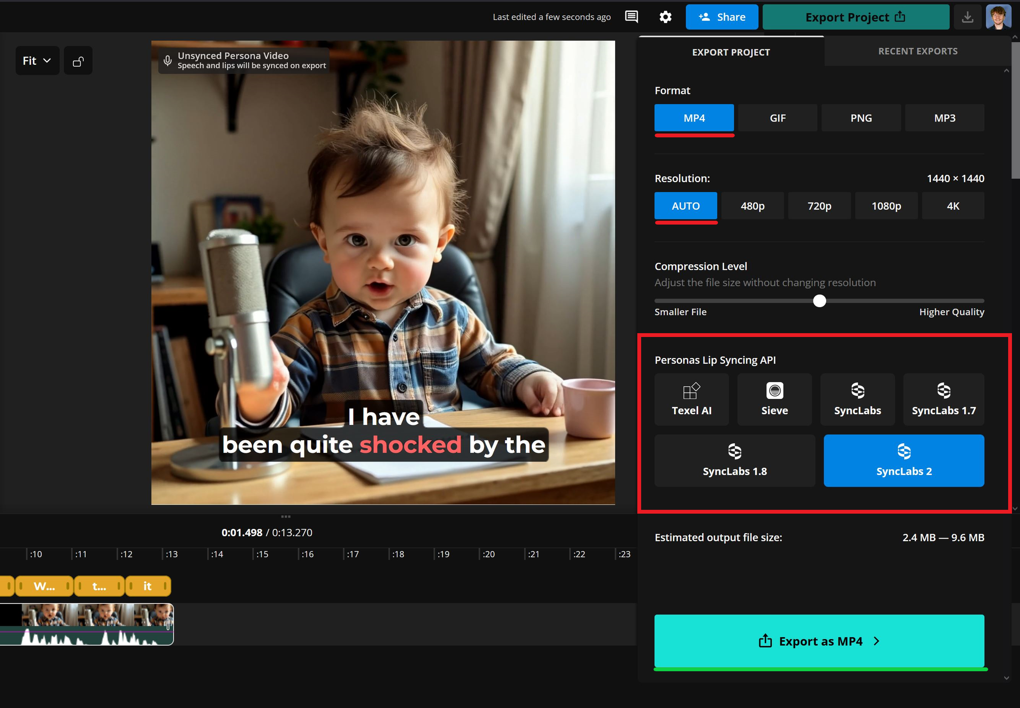 Note: A video that’s at least 15 seconds long will produce more accurate results. However, the 5-second clip we created earlier is still sufficient for generating an AI baby podcaster.
