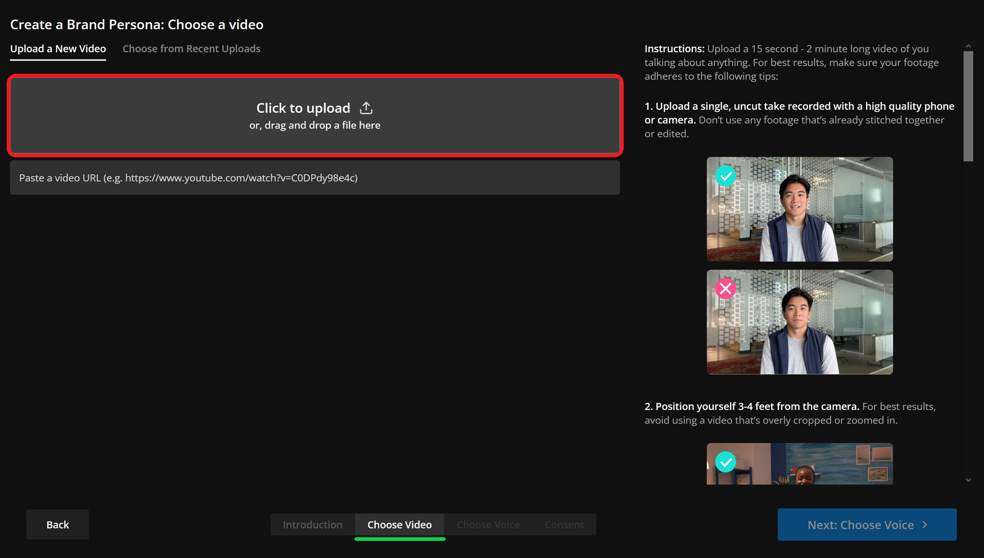 In the new project, navigate to the AI Voice option in the left-hand sidebar. From here, you’ll create an AI Persona using the video generated in the previous step.