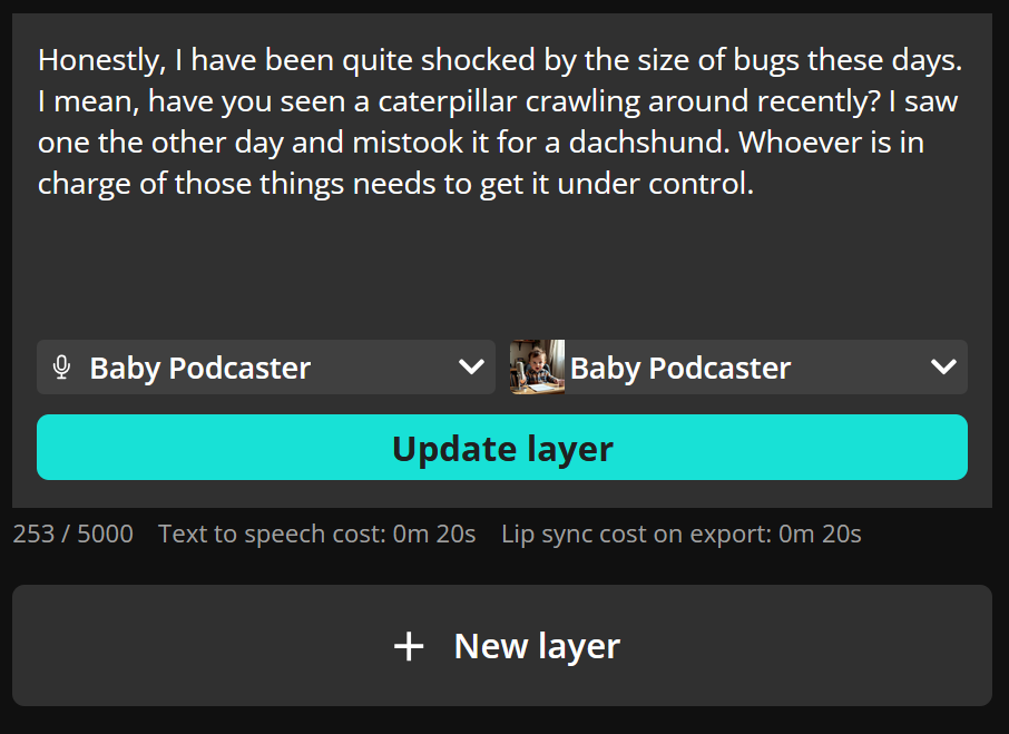 After updating the script, click Update Layer to apply the new narration to your project.