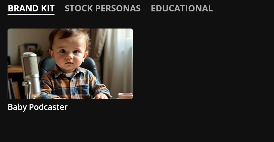 After a brief processing period (usually under a minute), your AI baby persona will appear in the Brand Kit section under the AI Voice tab, ready to use in your video.