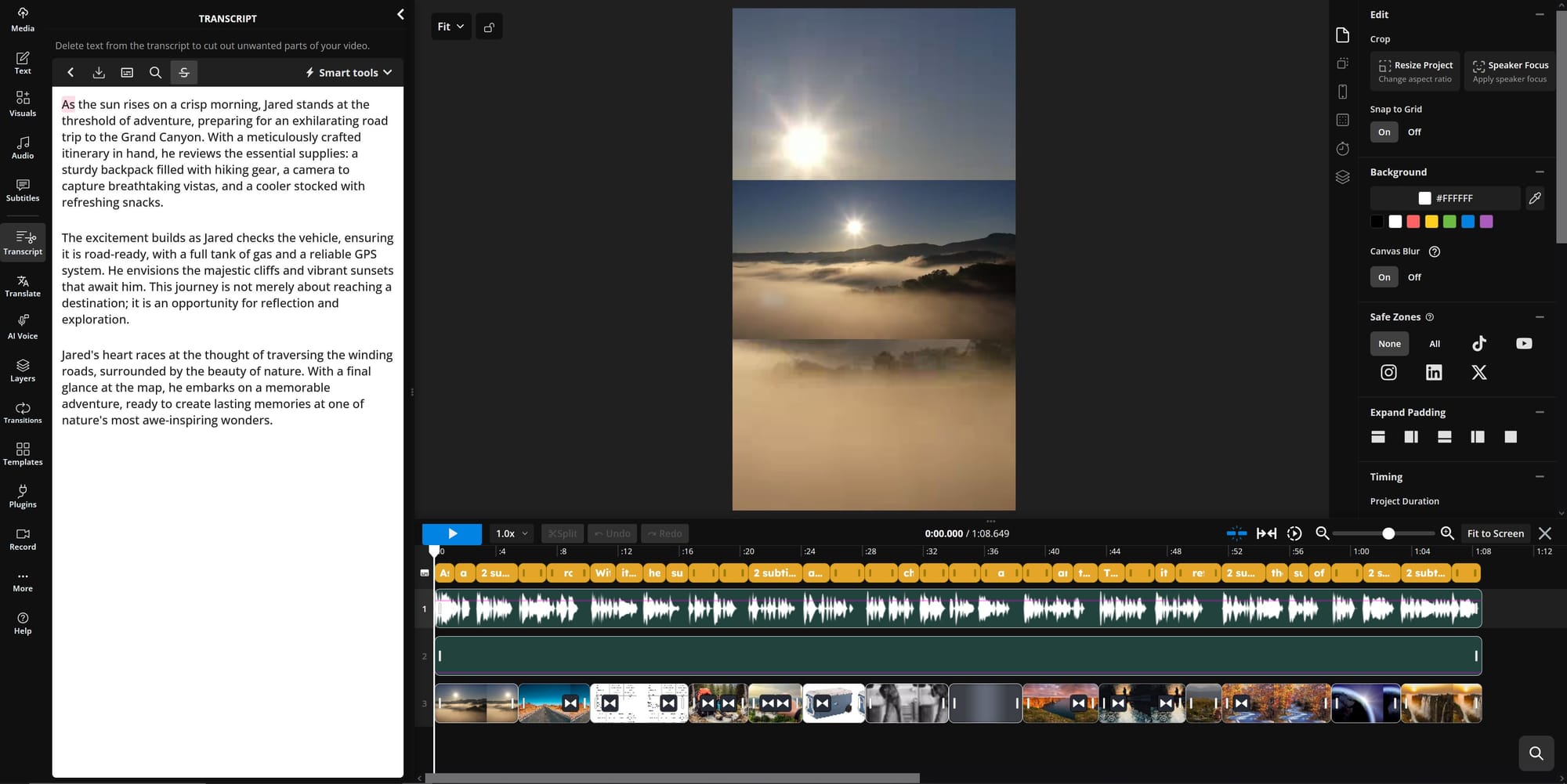 In this article, we’ll walk through how to do the Narrator Trend by building a video from scratch. Along the way, you’ll learn how to write a script, add a narrator voice, and edit your video with features like automatic captions.