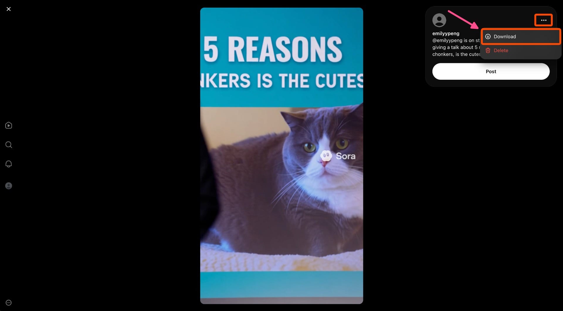 If you’re using Sora in a browser, you can save videos directly from your workspace.