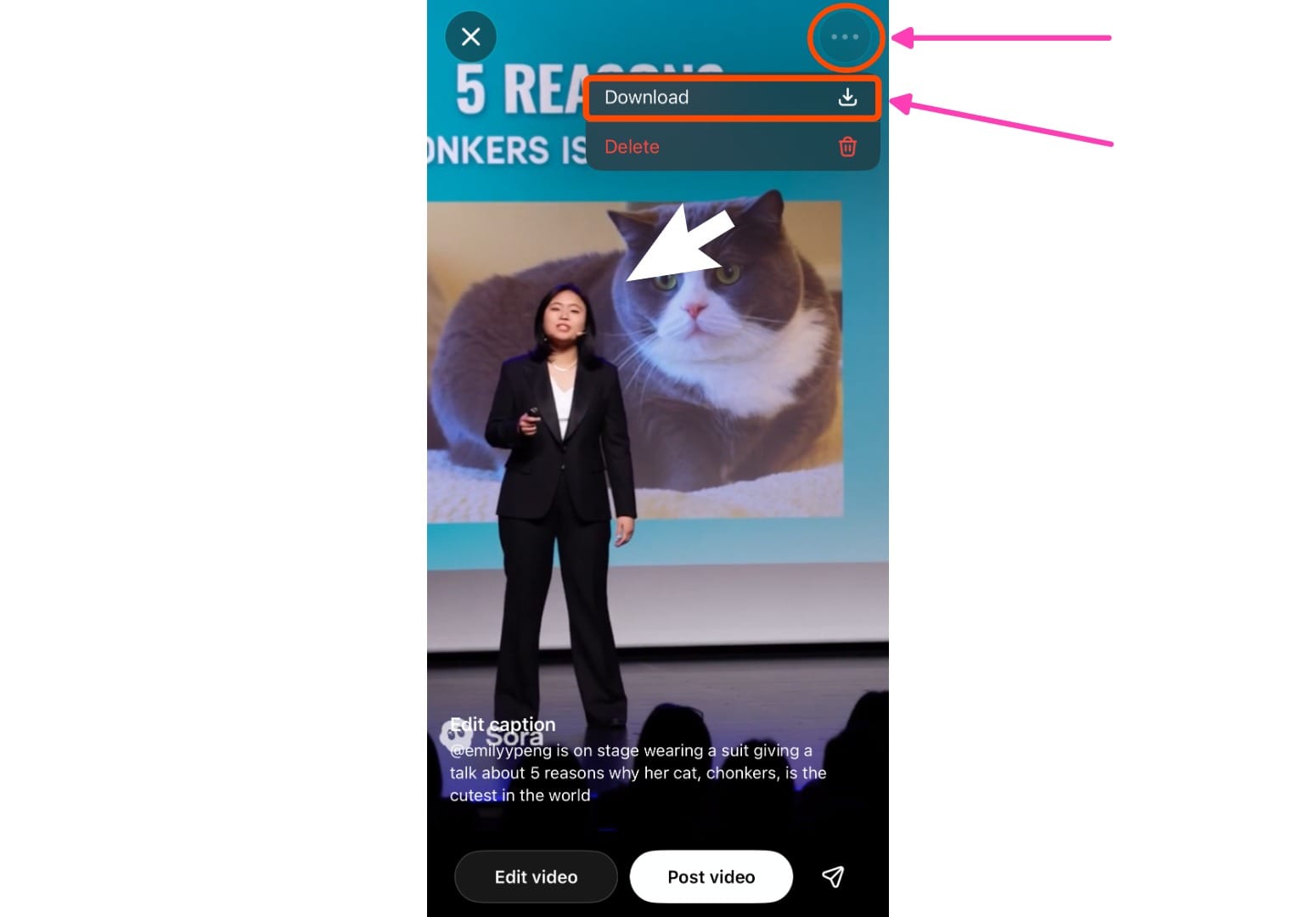 - Your own Cameo: You can download it normally. Some Pro users may receive a watermark-free version if the video was generated from text and only depicts themselves.