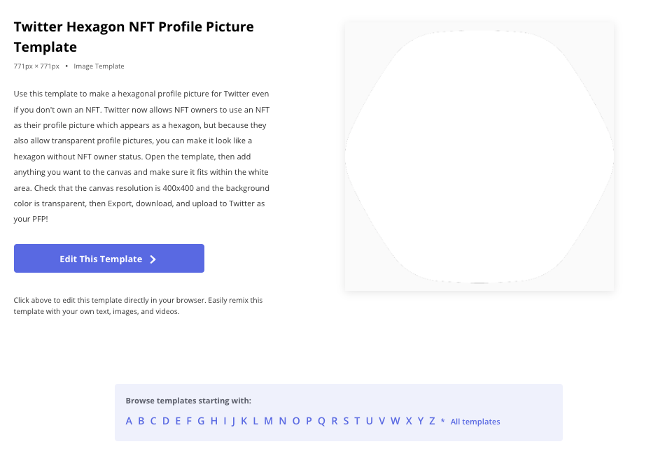 Create your own Twitter hexagon profile picture without owning an NFT by using this free, online template.